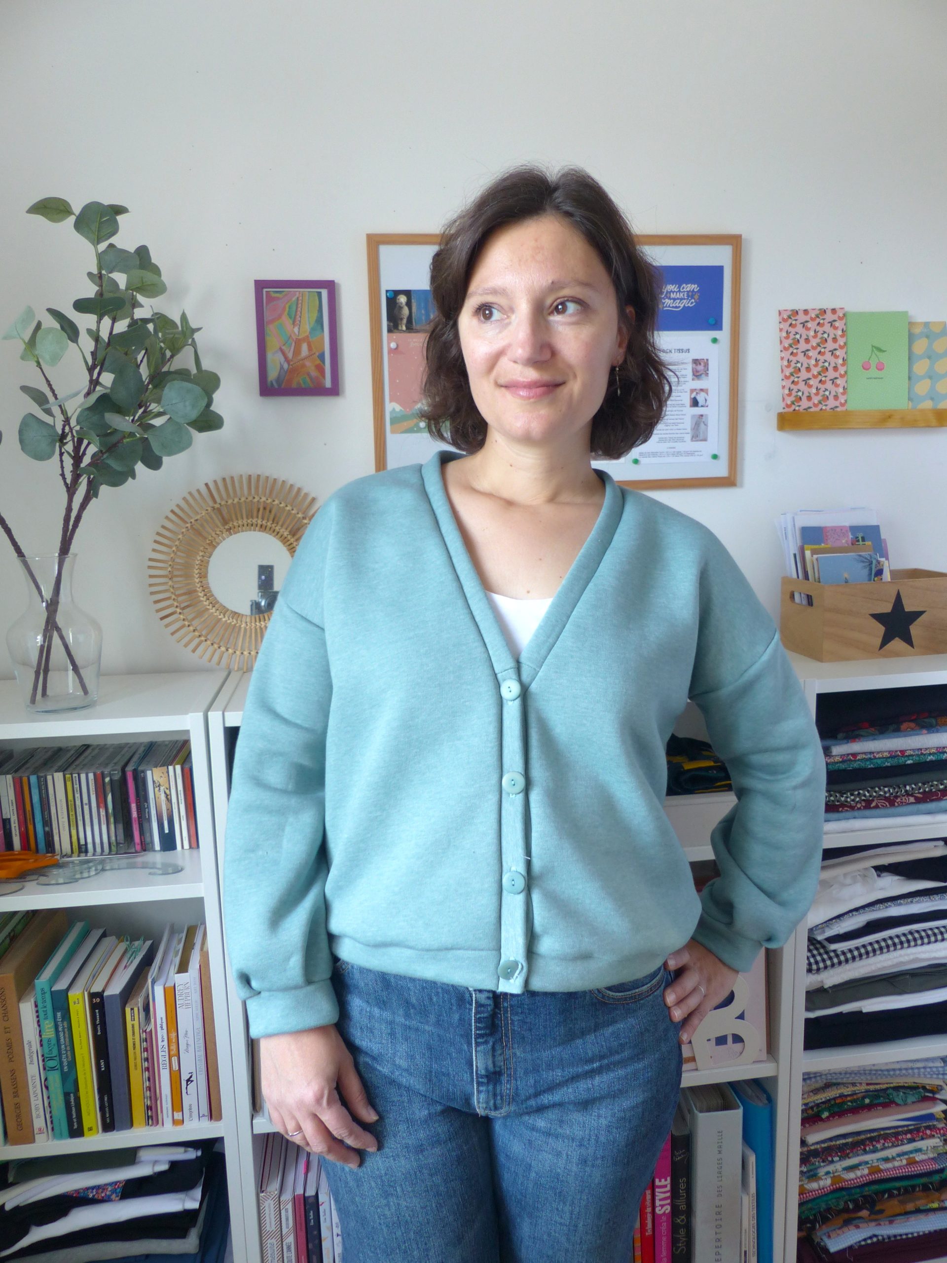 9- Le Cardigan Jamie de Ready to sew en french terry ici et en molleton gratté là.