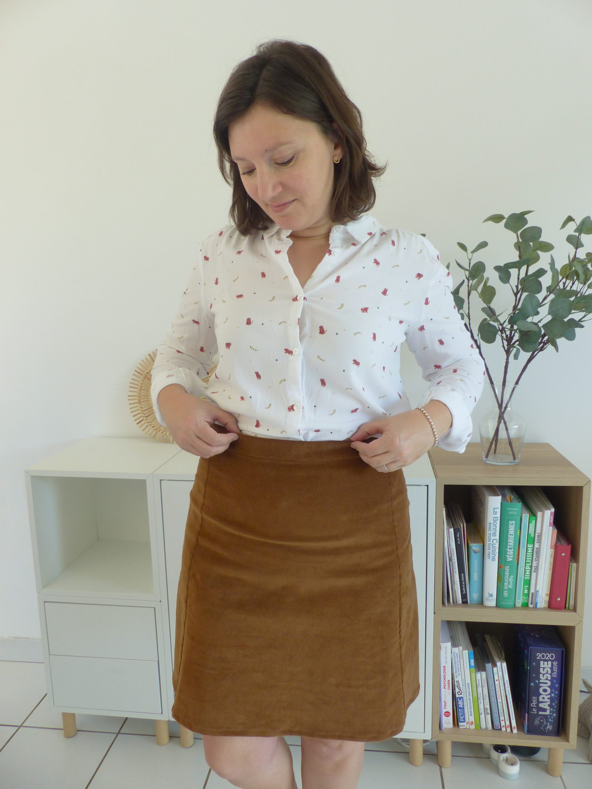 5- La jupe Caroline de l’Atelier des Premières cousue dans un velours camel là.