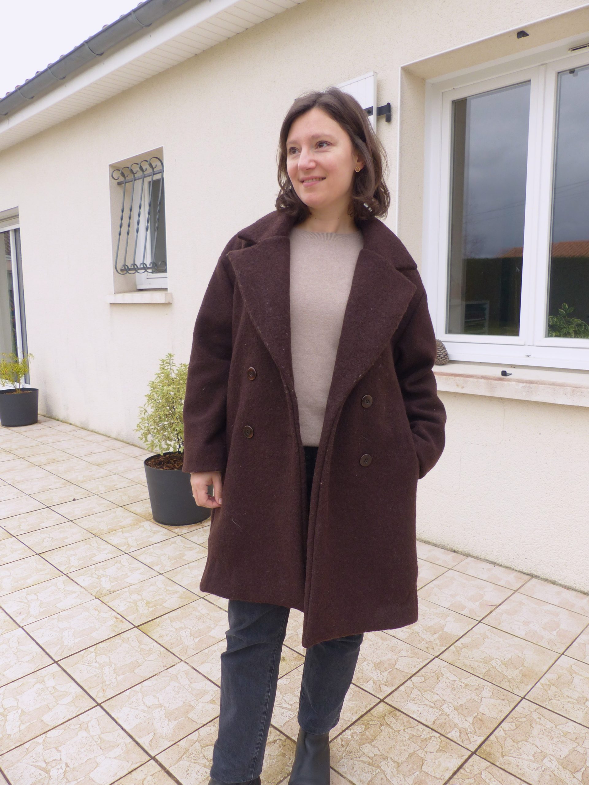 13- Le Manteau Lana de Clématisse Pattern dans une laine bouillie chocolat comme ici.