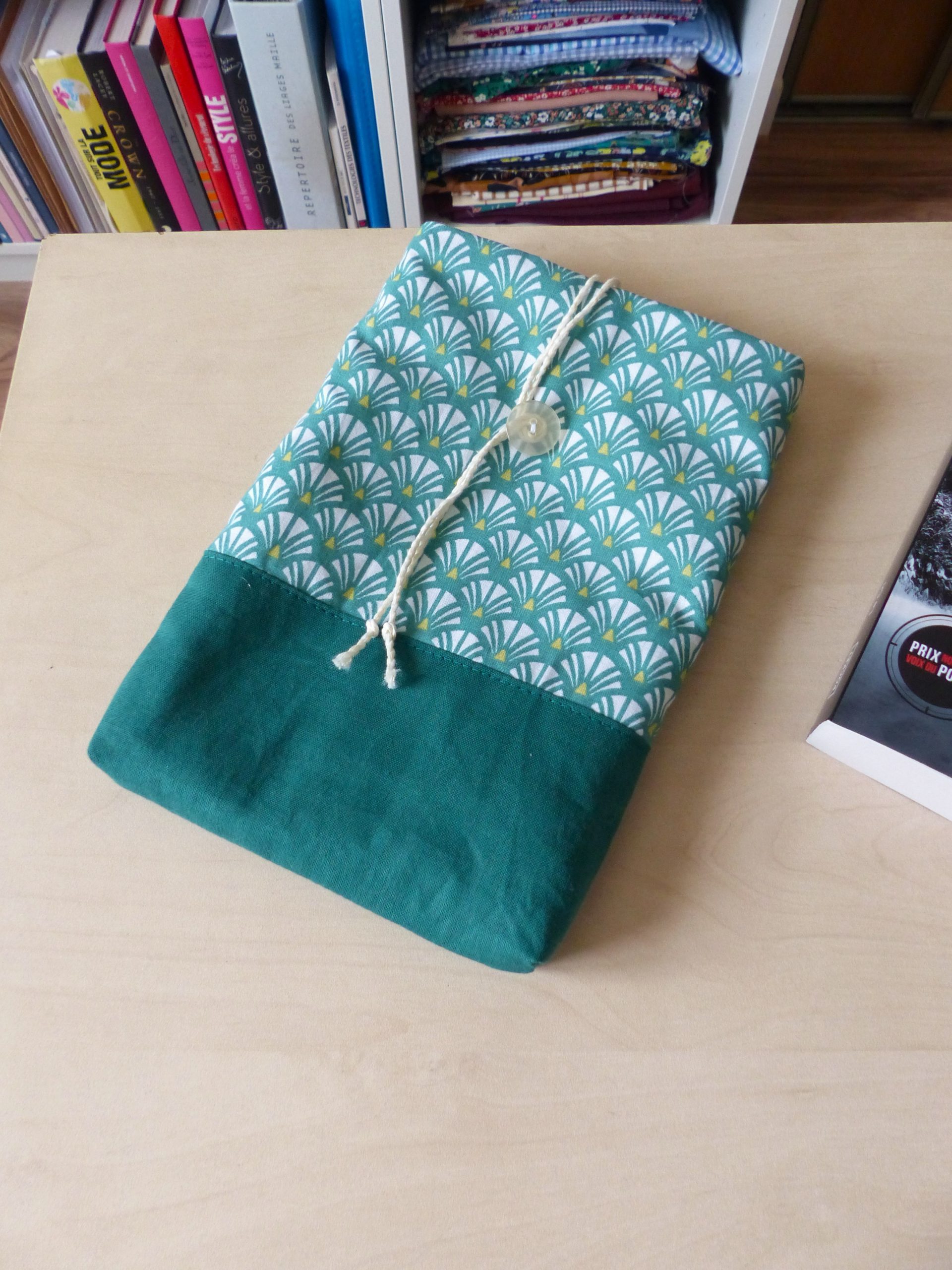 Pour protéger le carnet, on peut acheter sur le site la jaquette en simili cuir. Mais j’ai préféré coudre une pochette à livre molletonnée.